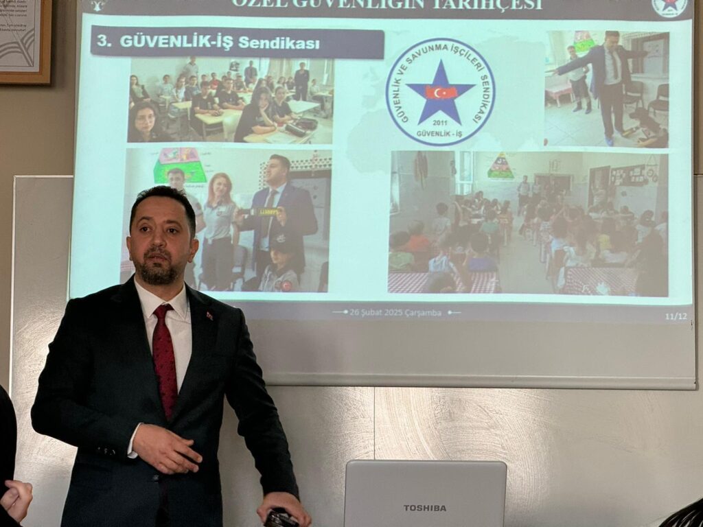 Güvenlik -İş Sendikası Bölge Başkanı Serkan Polat ve Devlet Hava Meydanları İşletmeleri Elazığ̆ Baş Temsilcisi Fatih Bahşi ile birlikte “Özel güvenlik tarihi ve özel güvenlik uygulamaları” adlı konferansta özel güvenlik ve koruma bölümü̈ öğrencileriyle bir araya geldi.