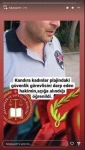Hakan SUER sosyal medya platformu İnstagramdan ‘’ özel güvenlik görevlisini darp eden hakim, açığa alındı… ‘’ bilgisi paylaştı.