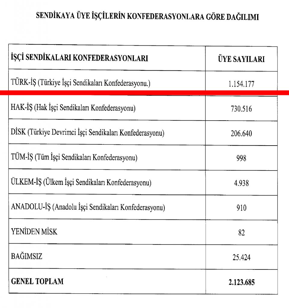 2021 Temmuz Ayı üye istatistikleri bugün ki resmi gazetede yayımlandı. Buna göre TÜRK-İŞ Konfederasyonu 1 Milyon 154 Bin 177 işçi üyesiyle büyümeye devam ederken HAK-İŞ Konfederasyonu 730Bin 516 üyede kaldı.